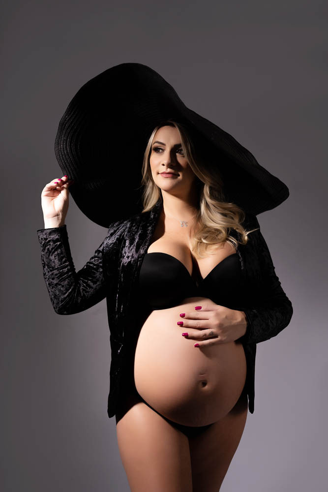Neste tipo de ensaio gestante podemos apostar em acessórios mais modernos e composições mais ousadas, efeitos e cores o figurino a ser utilizado fica por conta do estilo da cliente para trazermos sua identidade para o ensaio.