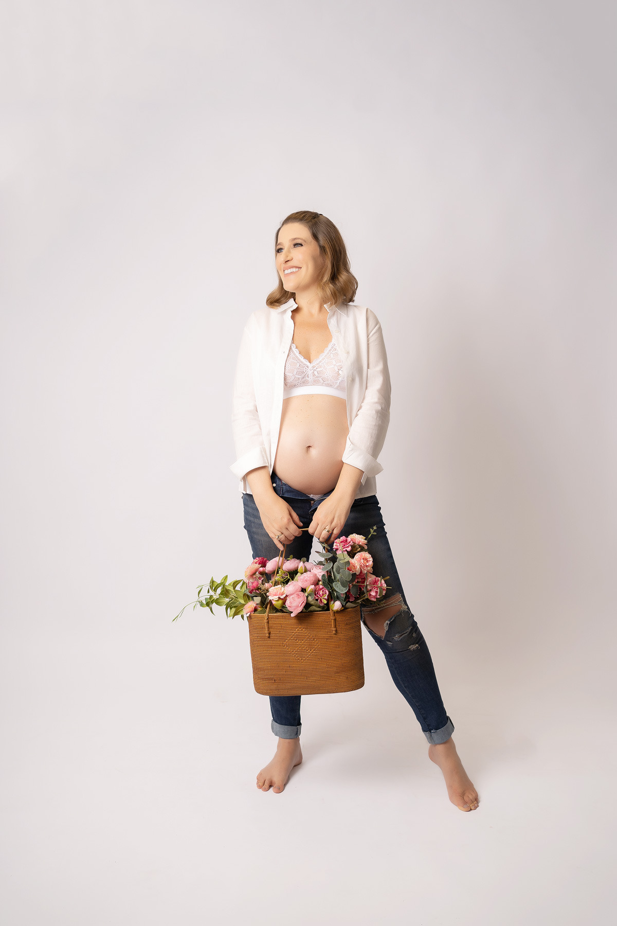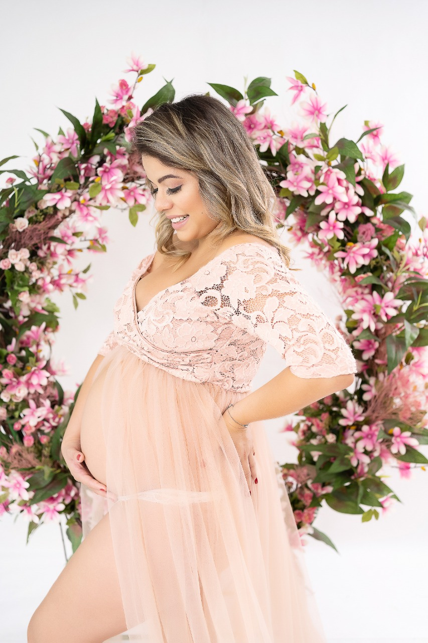 No ensaio gestante clean as cores geralmente são mais neutras e suaves, os destaques são muito utilizados durante o ensaio ressaltando os vários pontos de beleza da gestante, para as mamães românticas as flores estarão presentes na proposta de forma delicada.