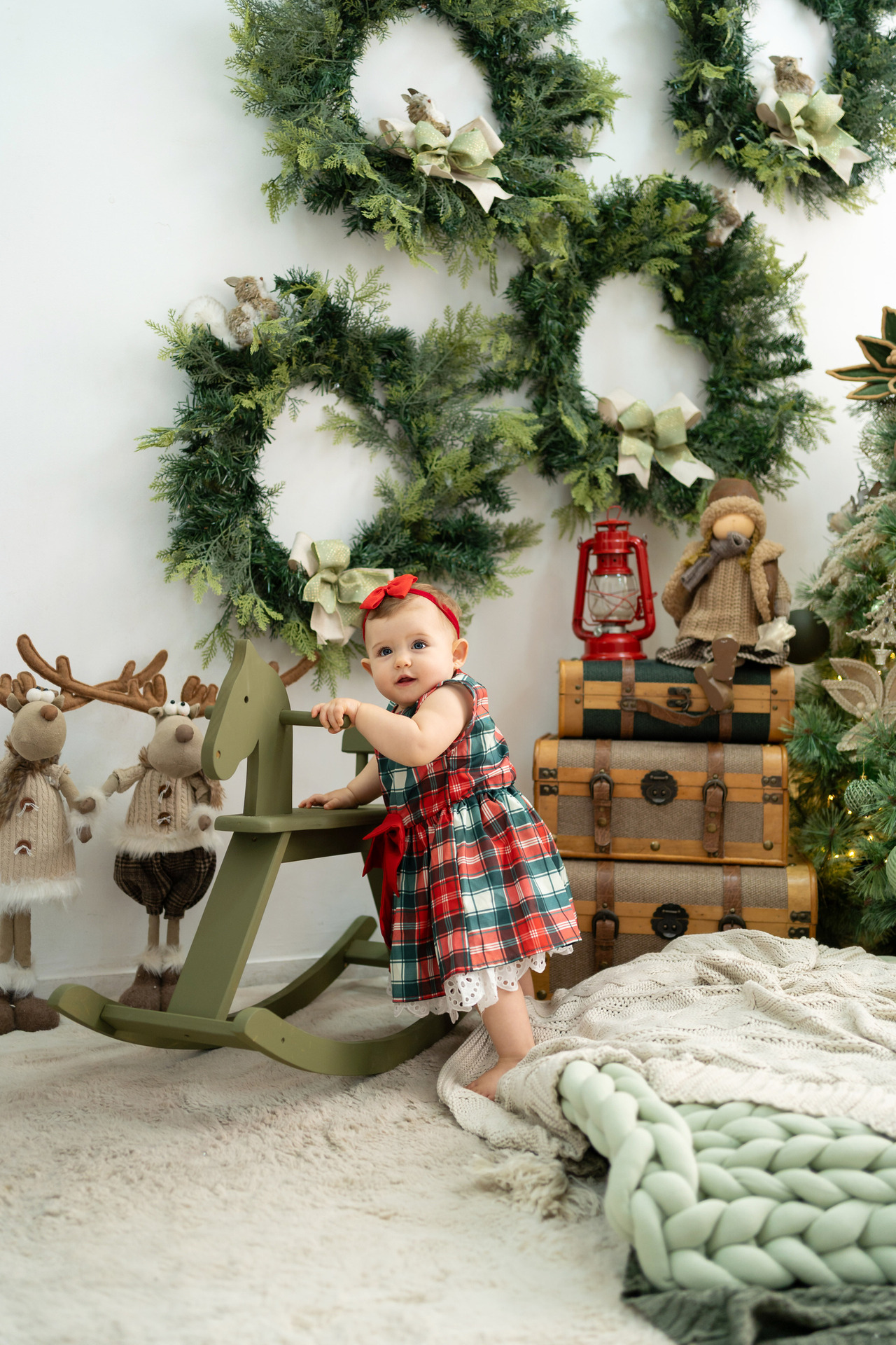 Disponibilizamos figurinos infantis (0 a 12 meses) gerando ainda mais a atmosfera natalina para um genuíno ensaio de natal.