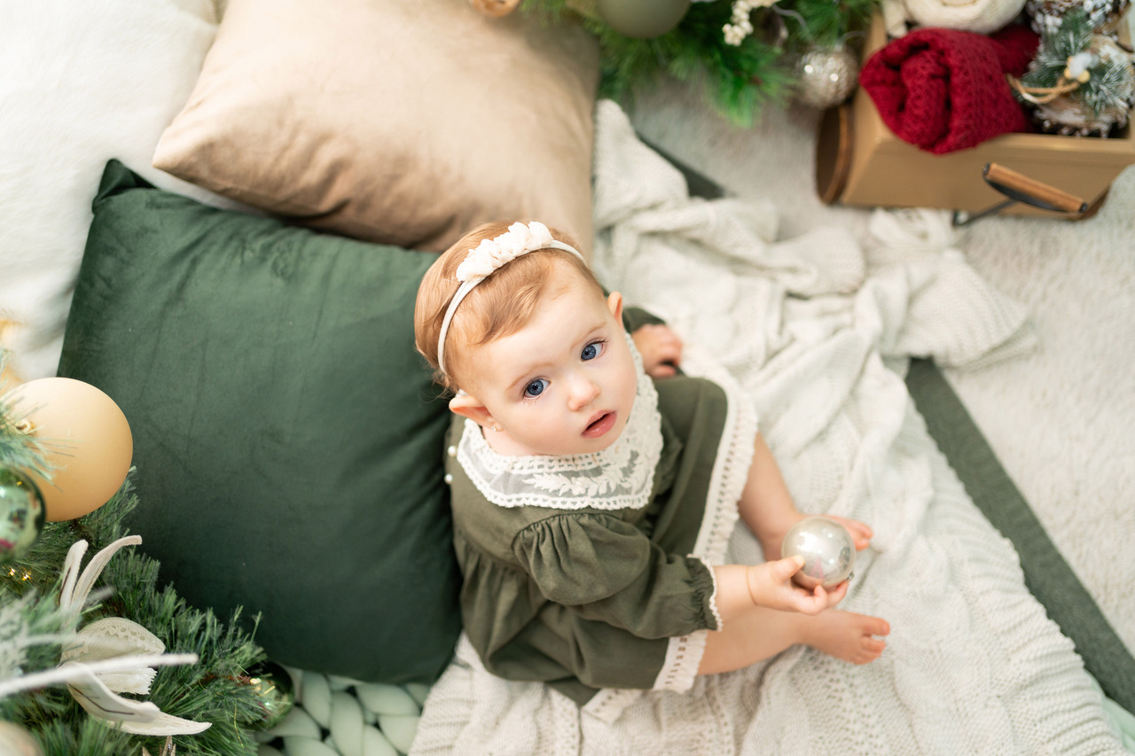 No nosso estúdio, preparamos um espaço acolhedor para a realização dos clicks. Por se tratar de um ensaio de natal, o cenário, elementos e figurino são temáticos e disponibilizados pelo estúdio, porém, é possível trazer elementos pessoais para incluirmos na sessão de fotos.