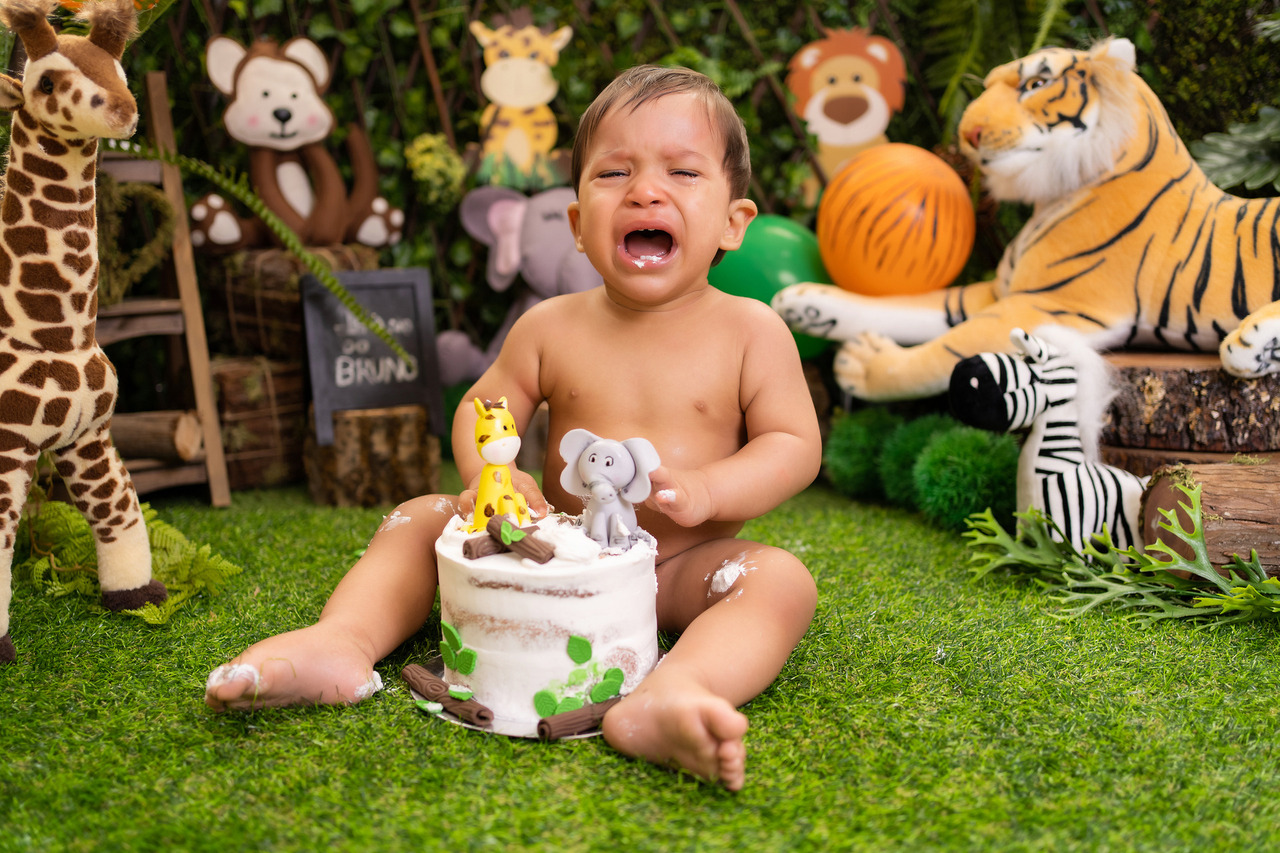Já vimos bebês tímidos chegarem todo acanhado e por fim acabar curtindo o ensaio, o bolo e render fotos lindas e cheias de sorrisos! Assim como bebês que são mais risonhos, segundo os pais, acabar estranhando o ambiente, ficar com medo do bolo e não querer sorrir para as fotos. Mas se isso acontecer e o seu bebê for do tipo mais sério, ou não querer sorrir, não é um problema, essas fotos também são cheias de significado e carregam as características especiais e únicas de cada bebê.