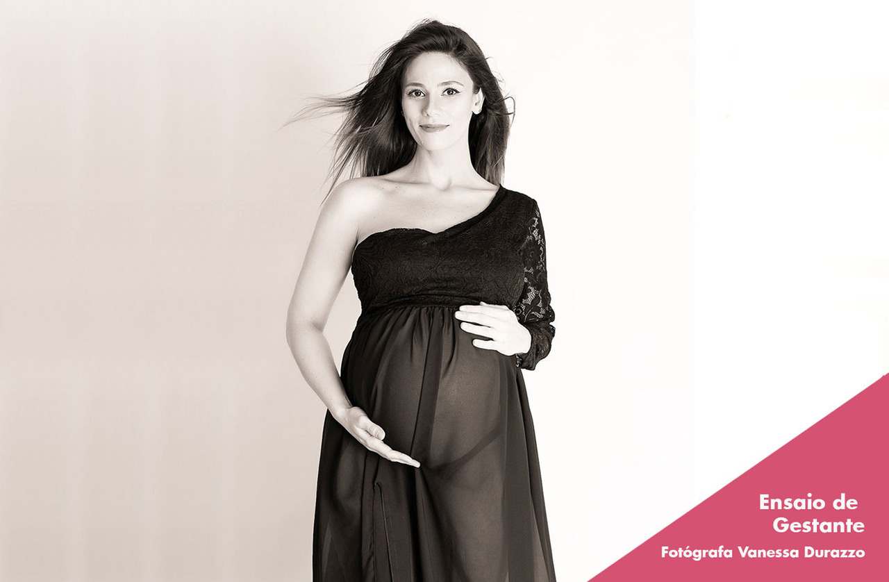 Neste tipo de ensaio, usamos e abusamos do contraste que o preto e branco traz na soma do cenário com a futura mamãe, trazendo mais elegância a cada clique.